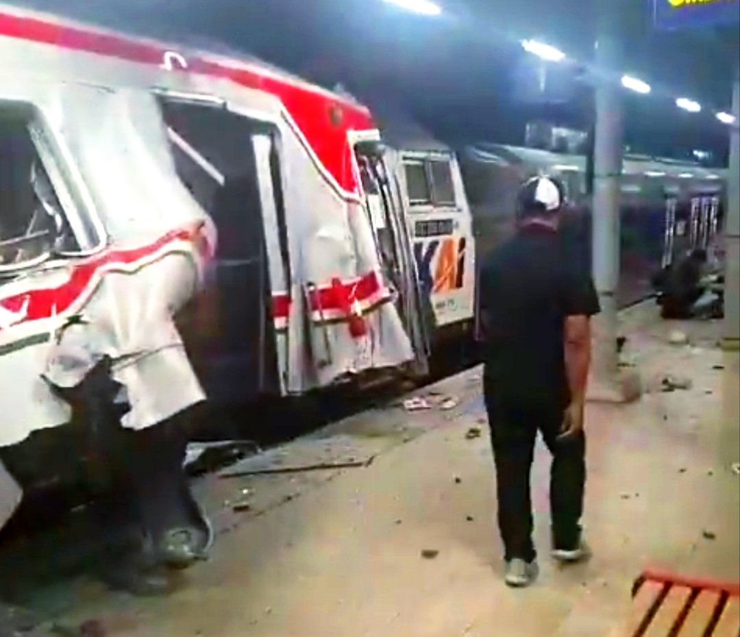 Informasi sementara menyebutkan KA Argo Bromo Anggrek dengan lokomotif CC206 menabrak KRL yang sedang berhenti atau melaju perlahan memasuki stasiun.